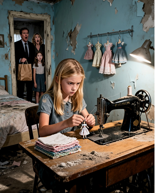 • U stanu nije bio odrasli stanar, već devetogodišnja devojčica. Ispred nje stajala je stara šivaća mašina, dok je ona pažljivo obradila komad tkanine, iako je bilo jasno da nije imala vremena za igru i detinjstvo. Njen izgled je bio zbunjujući – raščupana kosa, umorno lice i improvizovani zavoj na ruci. Iako povređena, nije pokazivala nikakav strah. Gledala ga je s ozbiljnošću koja nije pripadala detetu.