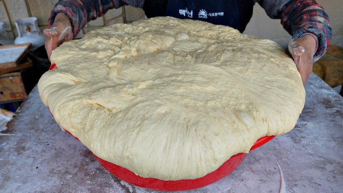 Kada se kvasac aktivira, dodajte ga u smjesu brašna zajedno s jogurtom i puterom. Lagano miješajući, počnite dodavati preostalo mlijeko. Mijesite tijesto rukama dok ne postane mekano i elastično, što će trajati otprilike 10 minuta. Kada se tijesto odvoji od posude, oblikujte ga u kuglu i lagano pospite brašnom. Tijesto možete mijesiti i u kuhinjskom mikseru s nastavkom za tijesto, što će vam olakšati posao. Ukoliko primijetite da je tijesto previše ljepljivo, slobodno dodajte malo brašna, ali pazite da ne predozirate.