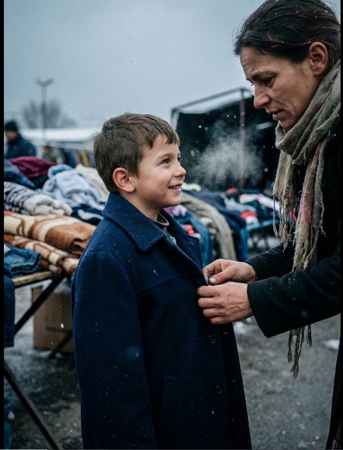 Ana je na trenutak zastala, osećajući kako joj srce lupa. 500 dinara bilo je sve što im je ostalo do kraja meseca. Ako bi kupila kaput, ne bi bilo novca za pečenicu. Ali pogledala je Stefana, kako drhti, i shvatila da nije pitanje luksuza. Njegova sreća bila je u tome da bude zaštićen od zime. „Uzeću,“ rekla je i pružila novac. Tada je obukla Stefana u kaput na sred pijace, pa čak i kad mu je bio malo velik, Ana ga je obgrlila. “Izvini, sine,” prošaputala je, ljubeći ga na čelo, dok joj suze nisu kliznule niz obraz. “Ove godine Deda Mraz nema za novu jaknu, ali u ovom kaputu nećeš biti hladan.”
