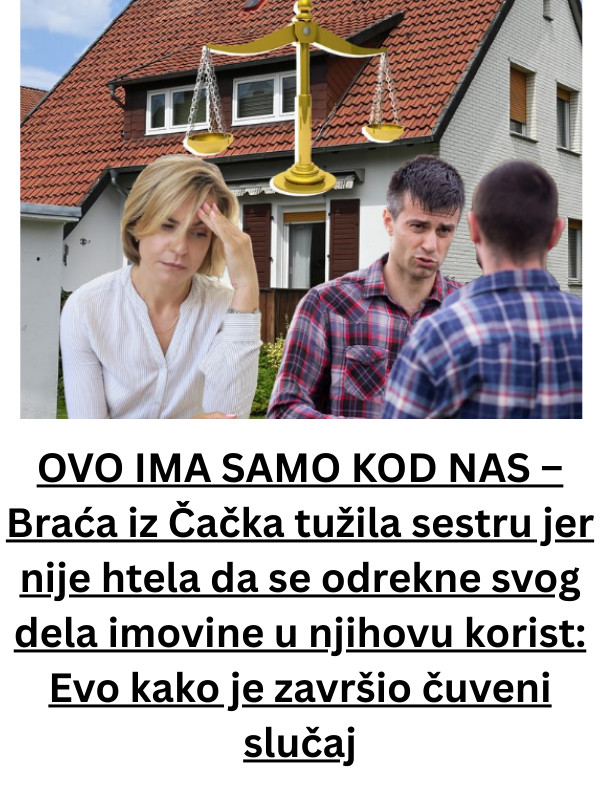 Jedan od najznačajnijih pravnih slučajeva koji su se dogodili u Čačku, koji je ostavio snažan pečat u kolektivnoj svijesti ovog područja, datira iz 1994. godine. Ovaj slučaj je direktno povezan sa pitanjem imovinskih prava i rodne nerazmjere u društvu. Naime, dva brata su podnijela tužbu protiv svoje sestre zbog njenog odbijanja da se odrekne dijela imovine koja joj zakonski pripada. Ovaj slučaj ne samo da je oslikavao pravna pitanja, već i dublje društvene izazove, pa je tako dok su braća nažalost preminula tokom dugotrajnog procesa, sestra se još uvijek bori za svoja prava. Njena borba simbolizira ne samo pravnu bitku, već i sukob između tradicije i modernih vrijednosti.