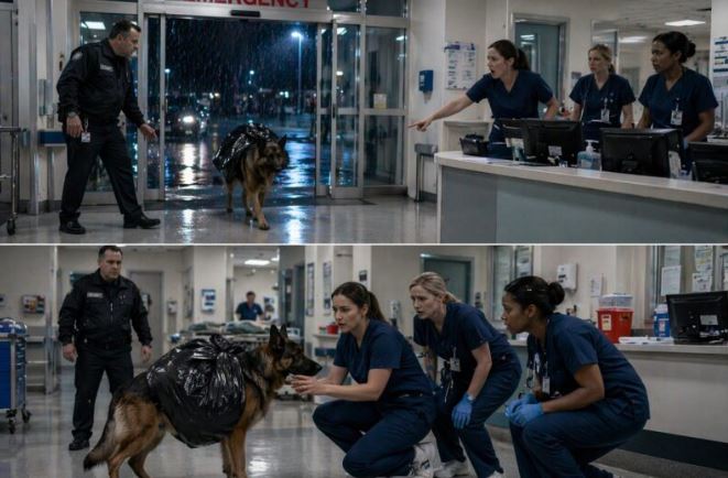 Iznenada, bolnički mir prekinuo je snažan lavež koji je odjekivao hodnicima. Dok su se svi okrenuli prema izvoru zvuka, automatska vrata su se otvorila i unutra je ušao pas. Njemački ovčar, potpuno mokar, sa crnom kesom za smeće na leđima, prošao je kroz recepciju ostavljajući iza sebe mokre tragove. Osoblje je odmah reagovalo, ali njihova zbunjenost i strah nisu mogli sakriti iznenađenje koje je donio taj neočekivani posjetilac. Ovakvi trenuci često izazivaju snažne emocije kod prisutnih, jer se ne može predvidjeti ponašanje životinje u neobičnim situacijama.