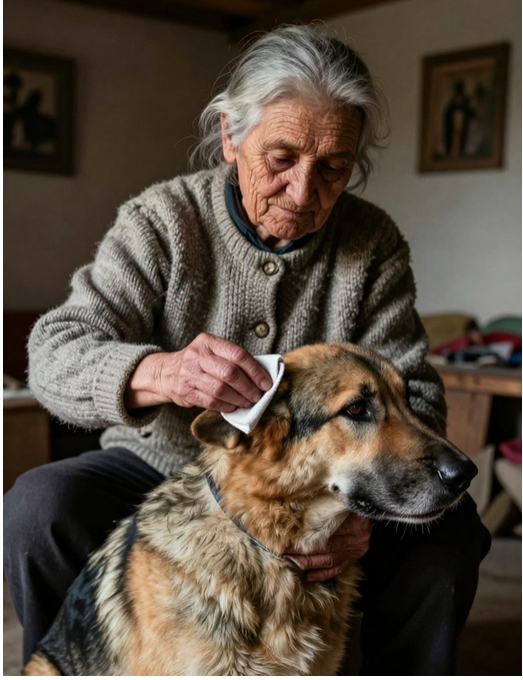 Jednog dana, dok je sjedila u dvorištu, umorna i preplavljena vlastitim mislima, osjetila je nešto toplo na svom koljenu. Grom je prišao i spustio glavu na njenu nogu. Taj trenutak bio je tih, ali snažan. Kao da joj je pokazivao da nije samo ona spasila njega.On je spasio i nju.U toj tišini, njih dvoje su pronašli mir koji nisu imali prije.Ali prava promjena dogodila se jedne noći.Lopovi su pokušali provaliti u kuću. Mislili su da je sama, da je laka meta. Razbili su prozor i ušli, sigurni u svoj plan. Nisu znali da nisu sami.