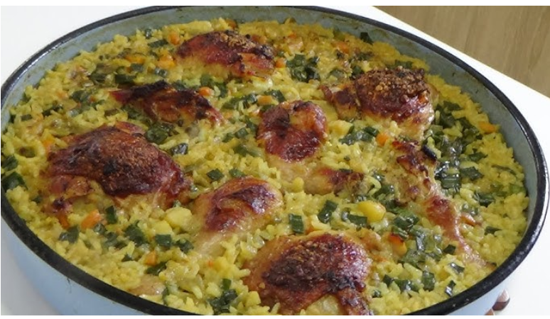 Kada je osnova spremna, sve se prebacuje u tepsiju. Piletina, koja se u međuvremenu ohladila, može se očistiti od kostiju ili ostaviti u komadima, u zavisnosti od želje. Meso se raspoređuje preko pirinča, kako bi se tokom pečenja svi ukusi ravnomjerno spojili. Zatim se dodaje još supe, vodeći računa da pirinač ima dovoljno tečnosti da se potpuno skuha i ostane sočan.